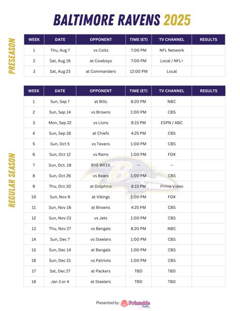 Ravens Printable Schedule. Web 1 saturday, august 12 7:00. Web regular season week 1 · sun 09/11 ·.