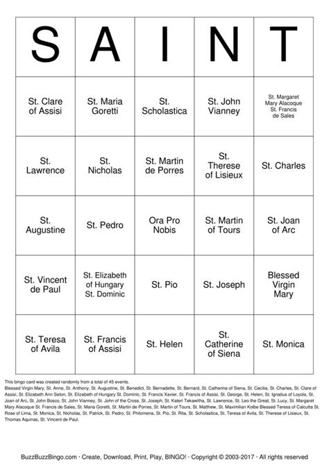 Saint Bingo Printable. Print this free saints bingo to help kids learn about the holy men and. Print the saint information cards on the following pages and cut apart.